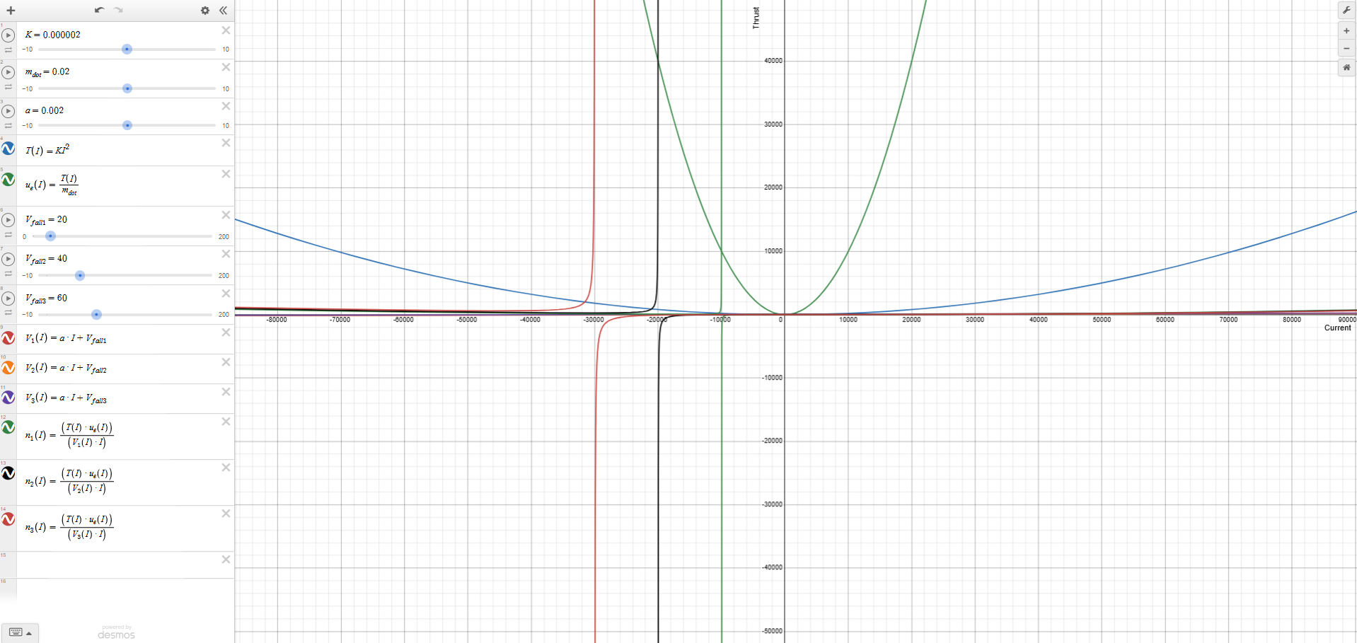 - Defined thrust as a function of current.